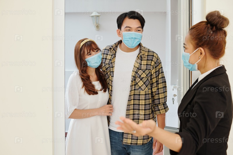 Агент по недвижимости приглашает пару в дом