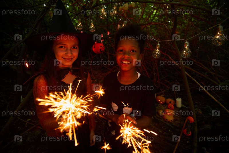 Дети с искрами на вечеринке