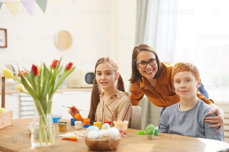 Счастливая семья сидит дома