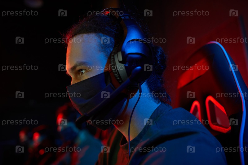 Геймер в маске играет в игры