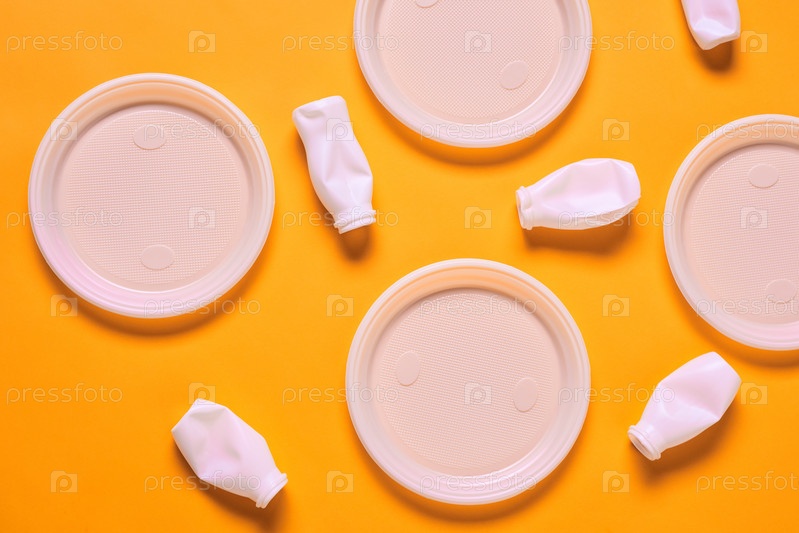 Пластиковые тарелки и бутылки