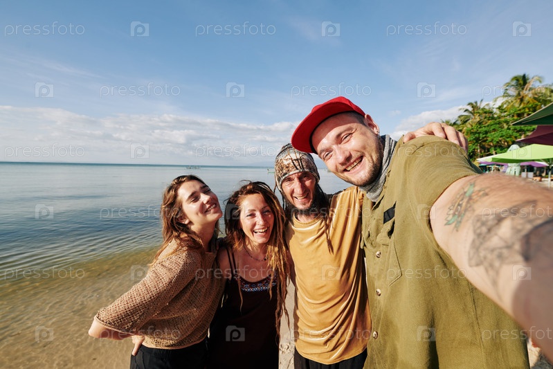 Сельфи на пляже с друзьями
