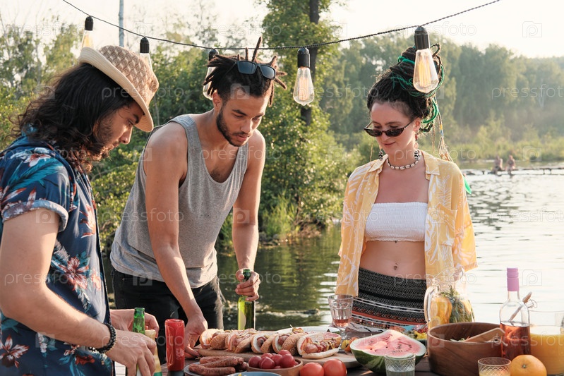 Молодые люди, которые едят хот-доги