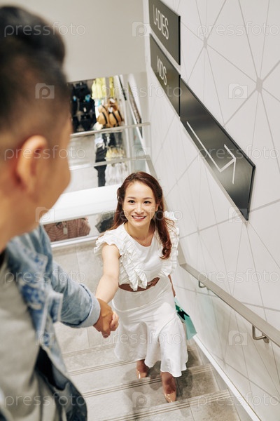 Пара ходит по лестнице