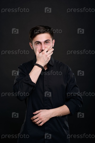 Шокированный мужчина закрывает рот