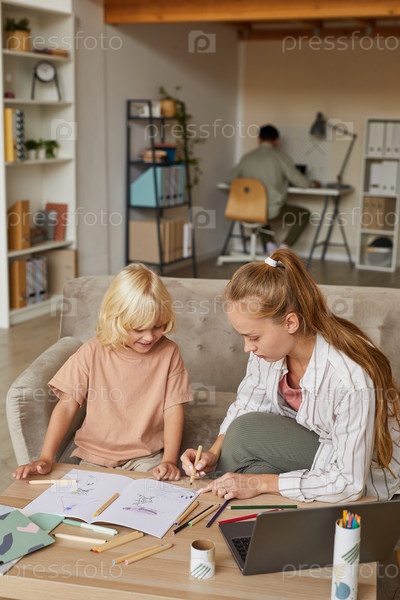 Маленький мальчик рисует с матерью