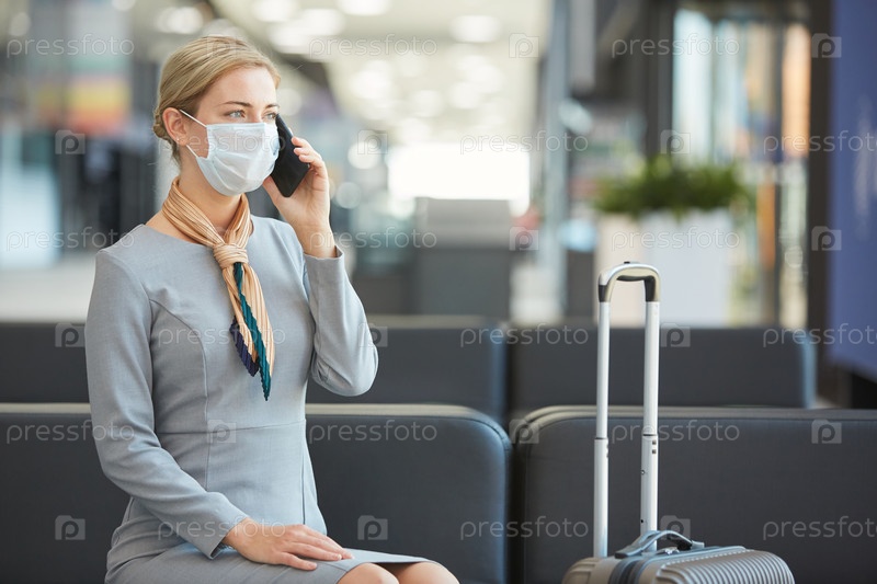 Элегантная женщина с маской в зале ожидания