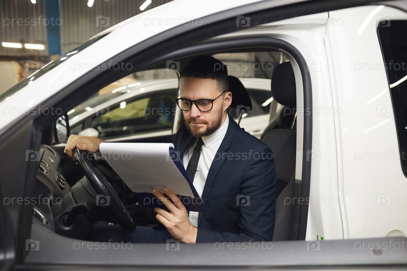 Серьезный мужчина в машине
