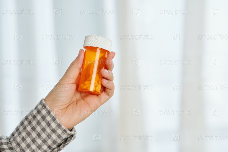 Рука с бутылкой с таблетками