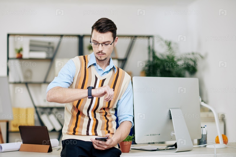 Предприниматель проверяет умные часы