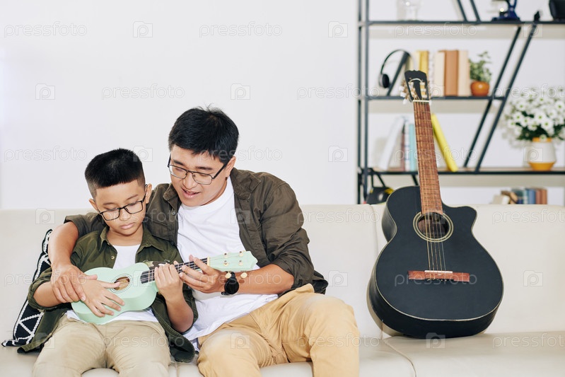 Учить сына играть на укулеле