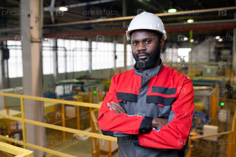 Афроамериканский фабричный рабочий в жесткой шляпе