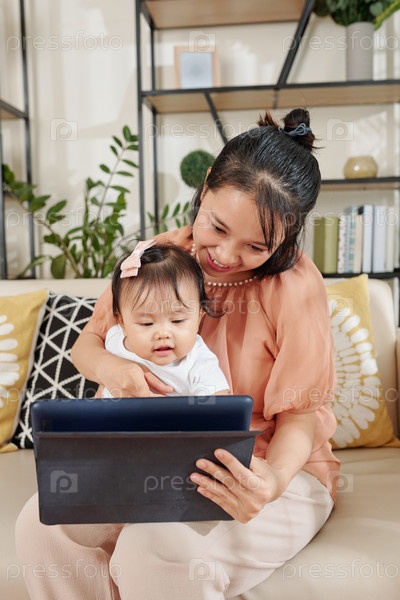 Мать и дочь смотрят образовательное видео
