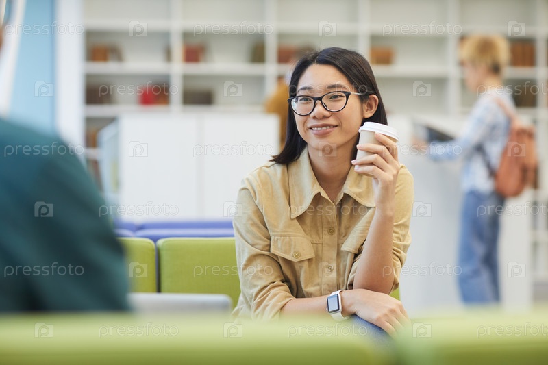 Улыбающийся азиатский студент в библиотеке