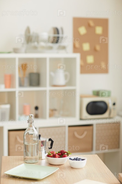 Свежие ягоды и вода на столе