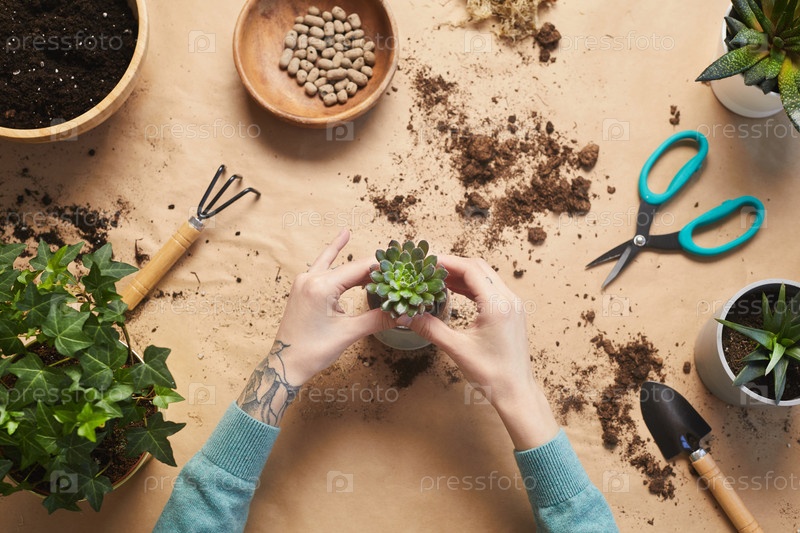 Background of Freshly Potted Succulent В свежем горшке выращенные сочные растения
