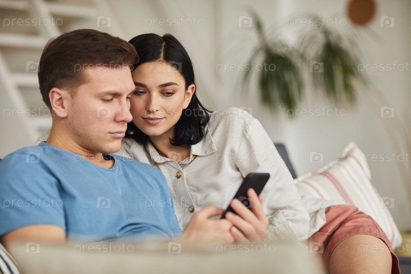 Пара заказывает еду через смартфон