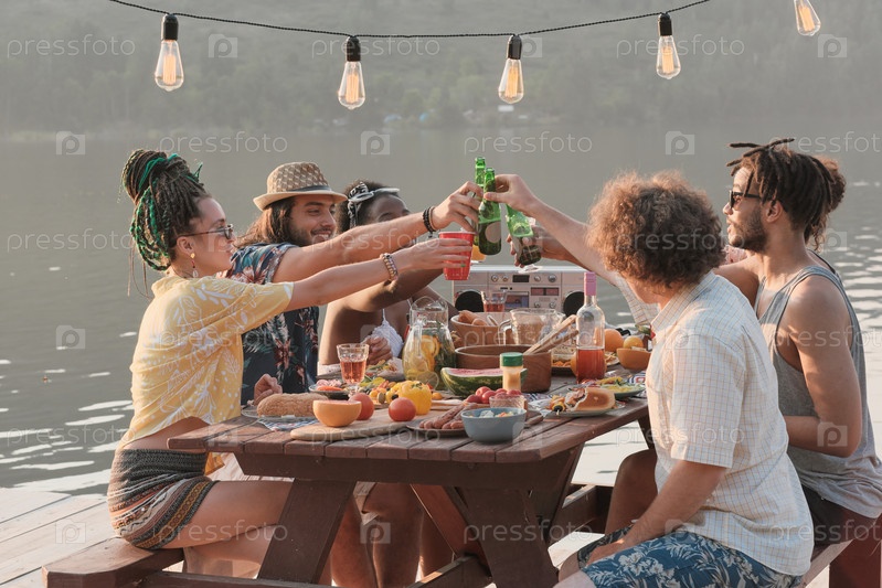 Друзья пьют пиво на свежем воздухе