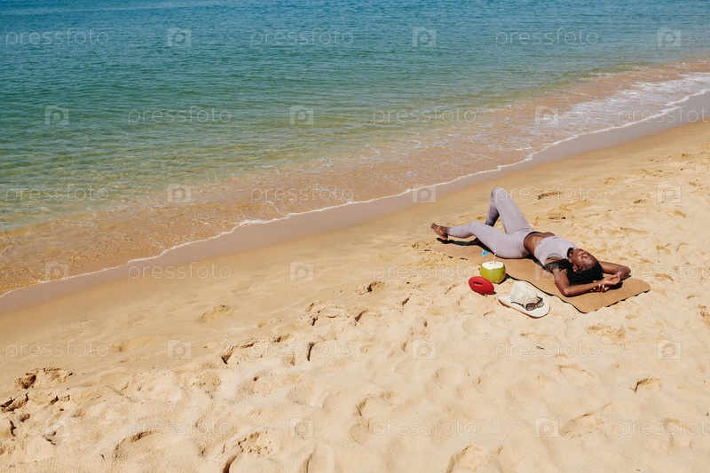 Женщина отдыхает на песчаном лугу