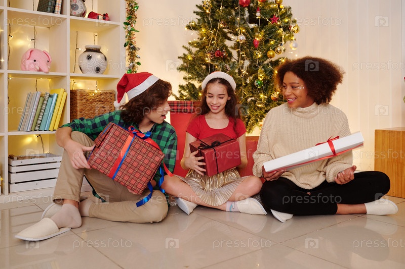 Дети открывают рождественские подарки