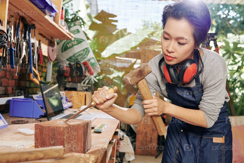 Плотник, использующий двор и молоток