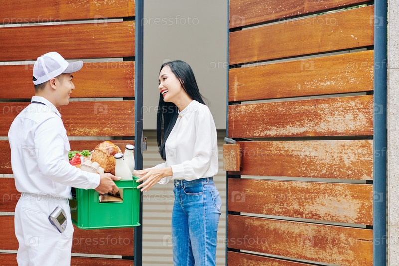 Курьер доставляет свежие продукты