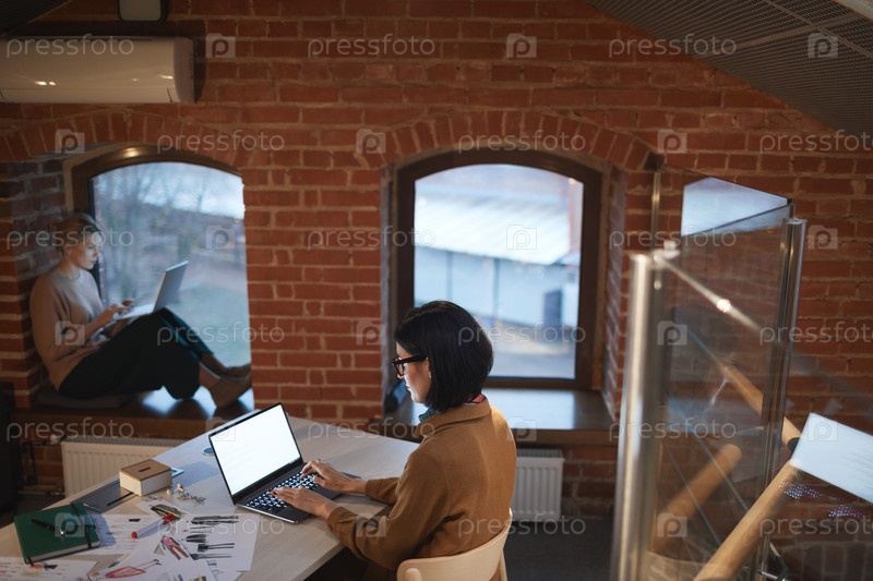 Две женщины работают в современном офисе