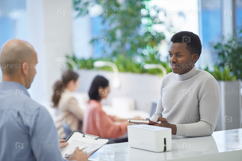 Африканский мужчина разговаривает с менеджером на работе