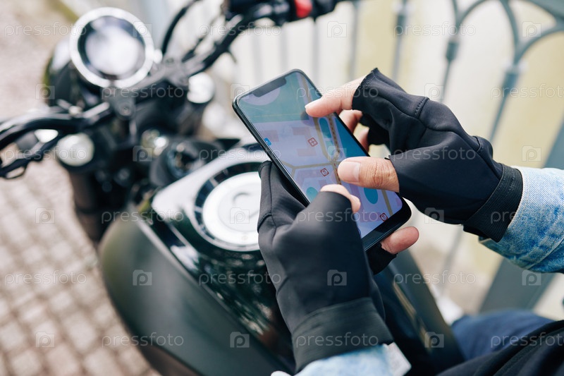 Мотоциклист приближается к карте