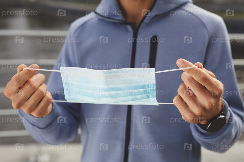 Мужчина, использующий маску на открытом воздухе