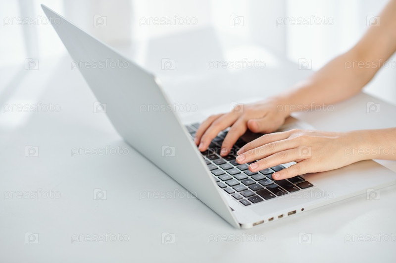 Женщина, печатающая на ноутбуке