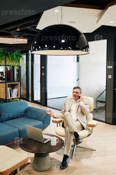 Бизнесмен, работающий в офисной гостиной