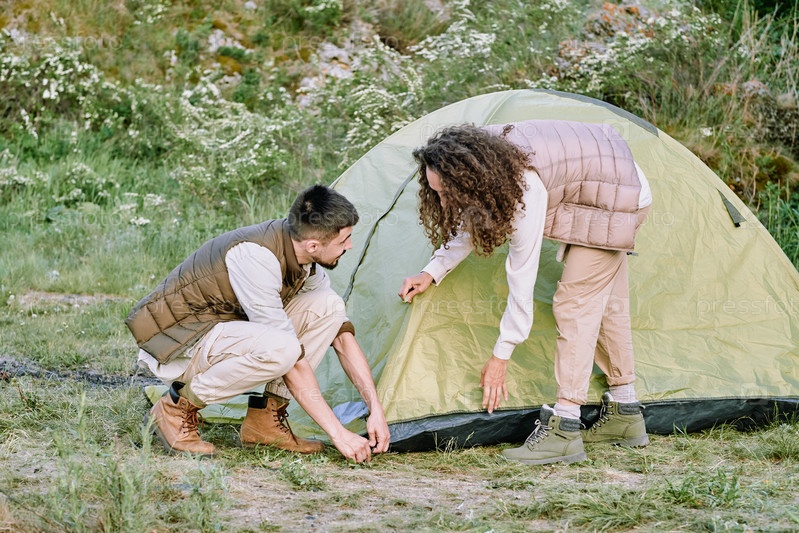Пара устанавливает палатку