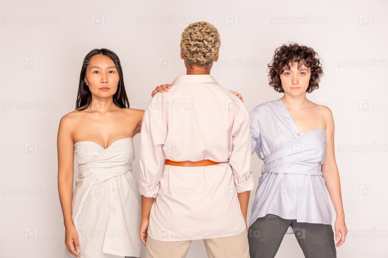 Молодые азиаты и женщины держат свои руки на плечах своего друга