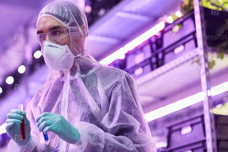 Ученый с образцами в лаборатории