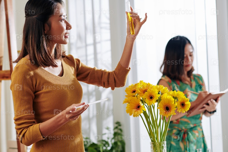 Женщина выбирает цвет для производства мыла