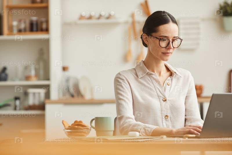 Молодая предпринимательница, использующая ноутбук дома