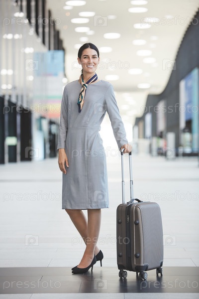 Улыбающаяся стюардесса с чемоданом