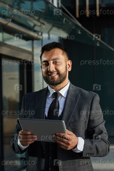 Бизнесмен с планшетным компьютером на открытом воздухе