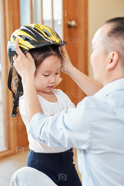 Отец помогает надеть шлем