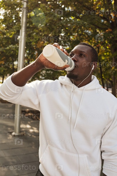 Спортивный мужчина пьет воду на улице