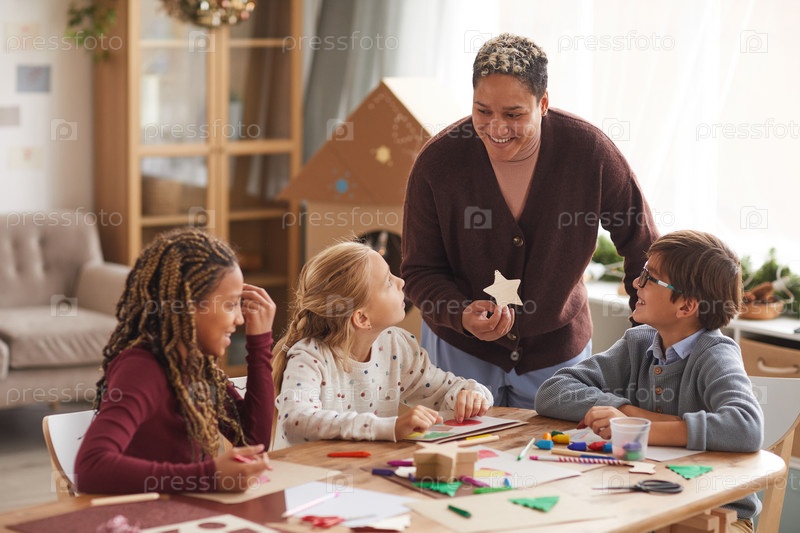 Счастливые дети наслаждаются классом искусств и ремесел