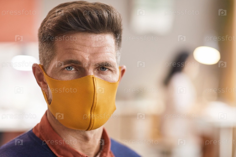 Зрелый мужчина, носящий маску на лице в офисе