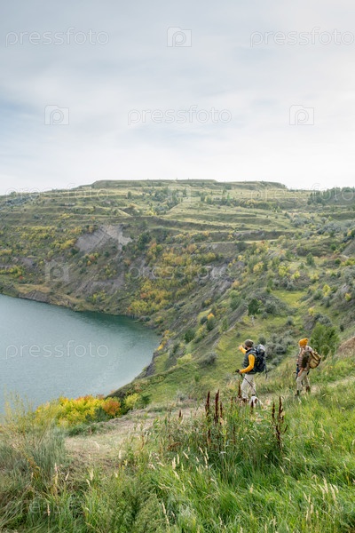 Величественная природа с обширными горами, окружающими реку и туристов-распутников