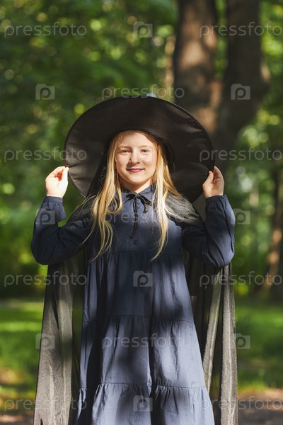 Подростковая девушка одета в костюм ведьмы на Хэллоуин