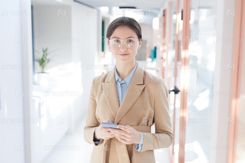 Элегантная молодая бизнесвумен в офисном зале