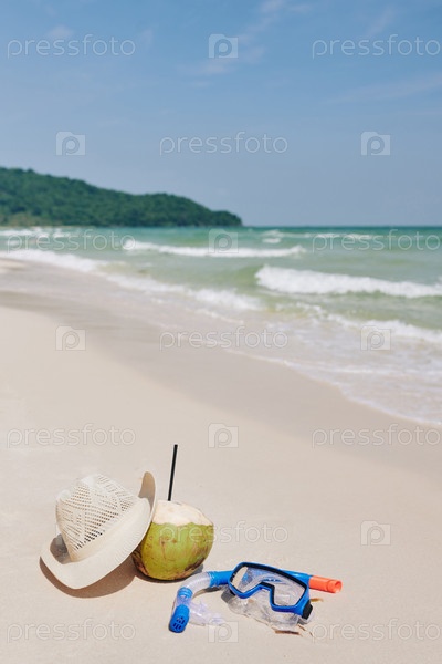 Маска для подводного плавания и кокосовый коктейль