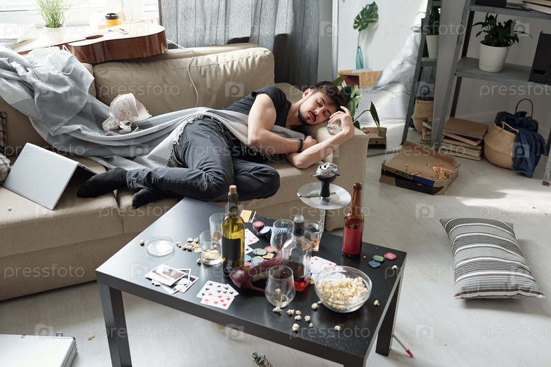 Спать на диване среди вещей