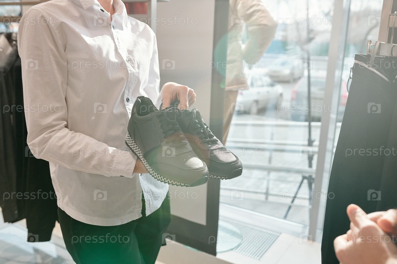 Предлагая обувь спортивного стиля в магазине