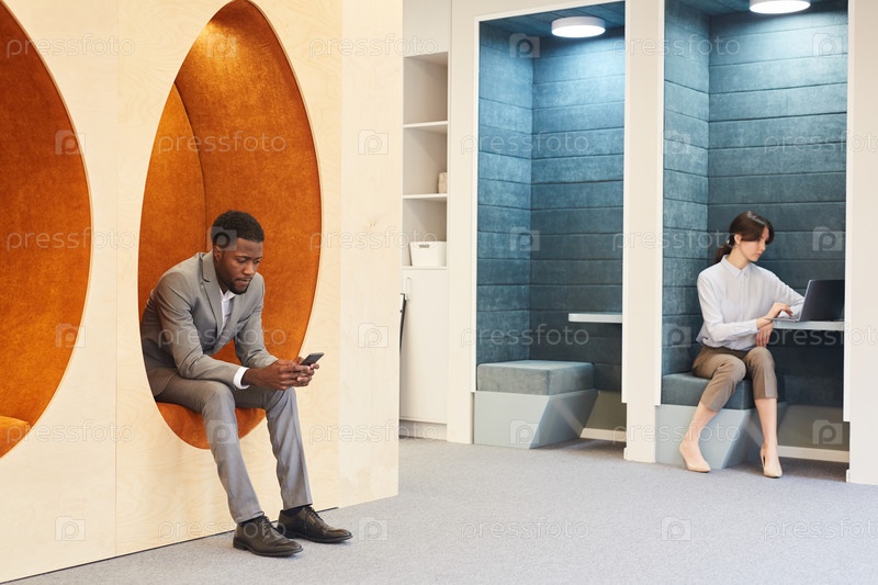 Люди в графическом офисном интерьере